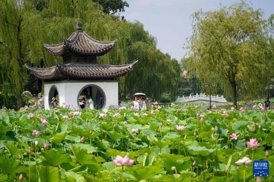 盛夏時節(jié),北京市陶然亭公園的荷花競相綻放,吸引眾多市民賞花。