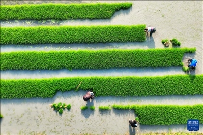 “三夏”時節(jié),綿陽市安州區(qū)秀水鎮(zhèn)石紅村一派忙碌景象。插秧機(jī)在田間穿梭,村民周啟軍忙著補(bǔ)栽秧苗?!白罱疃啵凑铡?jīng)紀(jì)公司’安排,除了農(nóng)忙插秧,下個月還得安裝路燈、修補(bǔ)堰塘?!崩现苷f。