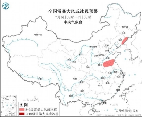 全國雷暴大風或冰雹預警(7月6日08時-7日08時) 圖源:中央氣象臺網(wǎng)站