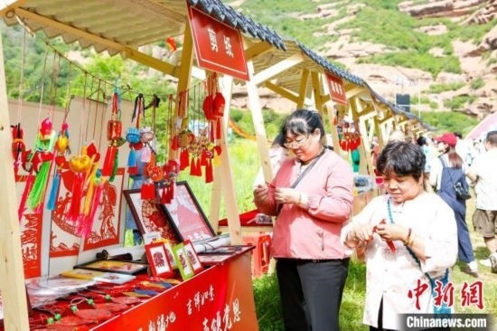 活動現(xiàn)場的非遺文創(chuàng)展臺吸引市民游客目光。固原市委宣傳部供圖