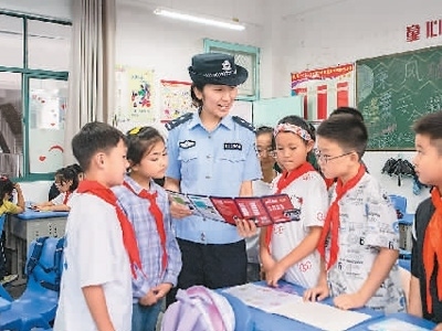 安徽省蕪湖市公安局繁昌分局城關(guān)派出所民警給小學(xué)生普及網(wǎng)絡(luò)安全知識。肖本祥攝(人民視覺)