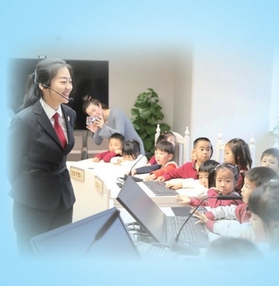 北京三中院組織開放日活動(dòng),法院干警(左一)為前來參觀的“小客人”介紹少年法庭。馬國強(qiáng)攝