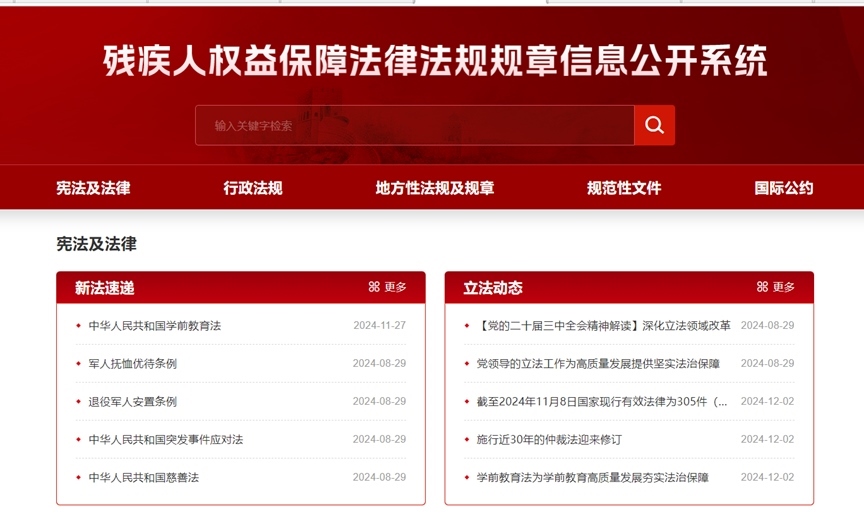 殘疾人權(quán)益保障法律法規(guī)規(guī)章信息公開(kāi)系統(tǒng)界面截圖