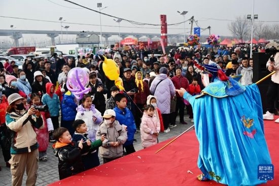 1月18日,人們在泊里大集上觀看表演。