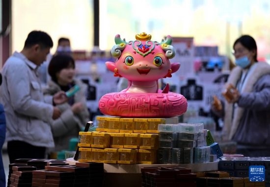 1月29日,游客在安徽博物院選購紀(jì)念品。