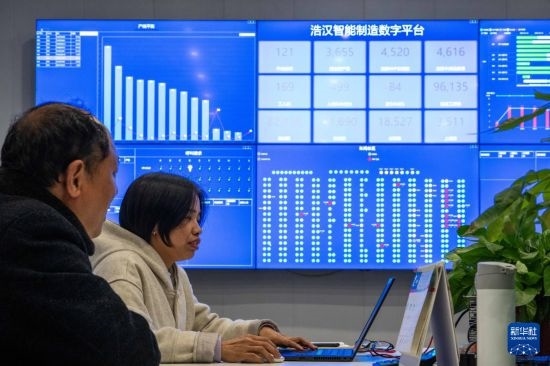 2月24日,在沅江高新區(qū)服裝產(chǎn)業(yè)園一家制衣企業(yè),工作人員通過智能制造數(shù)字平臺(tái)了解車間生產(chǎn)情況。