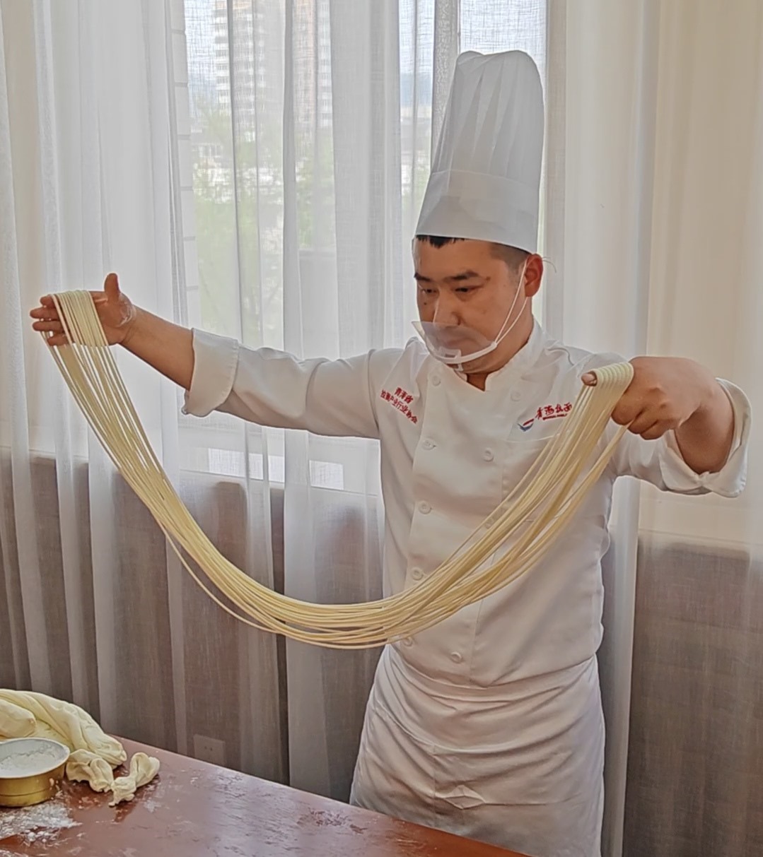 來自青海省本地的拉面師傅還在現(xiàn)場展示了拉面技術。據(jù)了解,拉面是4000多年來中華民族對美食的探索和傳承的結晶。2002年,在青海省海東市民和回族土族自治縣的喇家遺址中發(fā)現(xiàn)了距今4000多年前的一根面條,是迄今為止發(fā)現(xiàn)的世界上最古老的面條,被稱作“世界第一面”,也說明中國是面條的發(fā)源地。