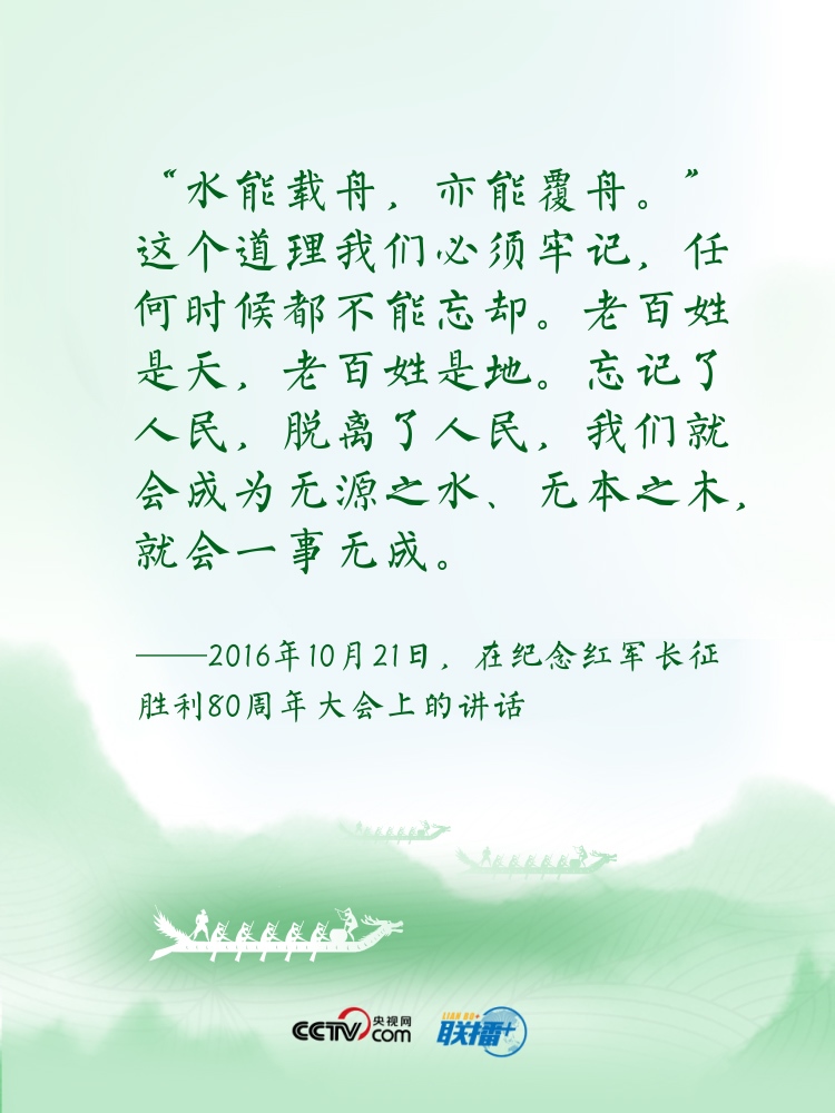 過(guò)端午,賽龍舟。龍舟這項(xiàng)傳統(tǒng)運(yùn)動(dòng),象征著中華民族的拼搏、堅(jiān)韌、團(tuán)結(jié),承載著深植在民族基因里的愛國(guó)主義之魂。“舟”字自古以來(lái)在中華傳統(tǒng)文化中都有著深刻寓意?!耙浪兄?,忠誠(chéng)為民”“逆水行舟,不進(jìn)則退”......習(xí)近平總書記曾多次以“舟”為喻闡釋思想,寄情言志。央視網(wǎng)《聯(lián)播+》特進(jìn)行梳理,讓我們沿著總書記指引的方向,團(tuán)結(jié)奮進(jìn),砥礪前行?! ?/p>