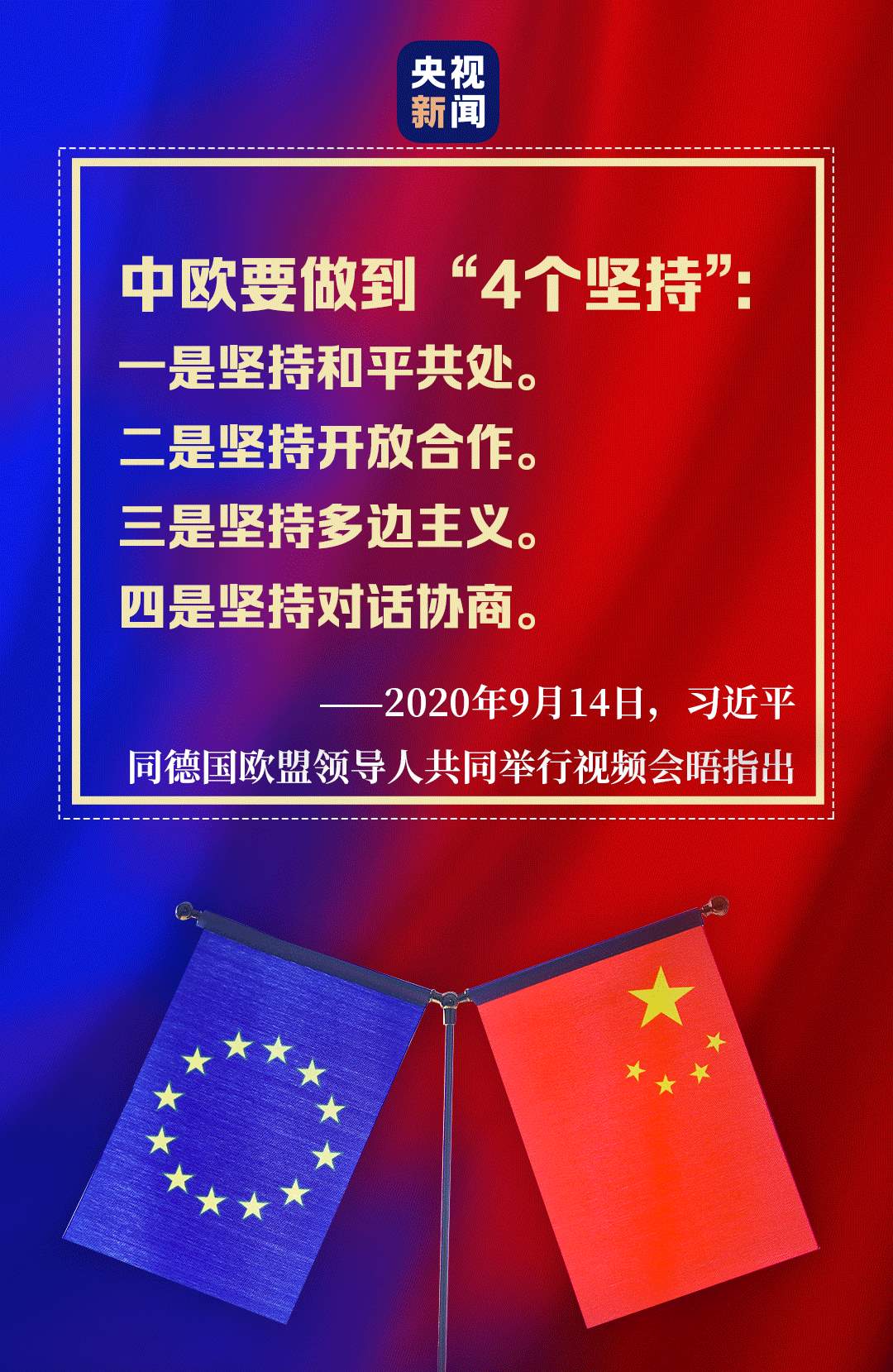 “后疫情時(shí)代”中歐關(guān)系如何發(fā)展,習(xí)近平主席的“4個(gè)堅(jiān)持”向世界表明了中國(guó)立場(chǎng)、中國(guó)態(tài)度。