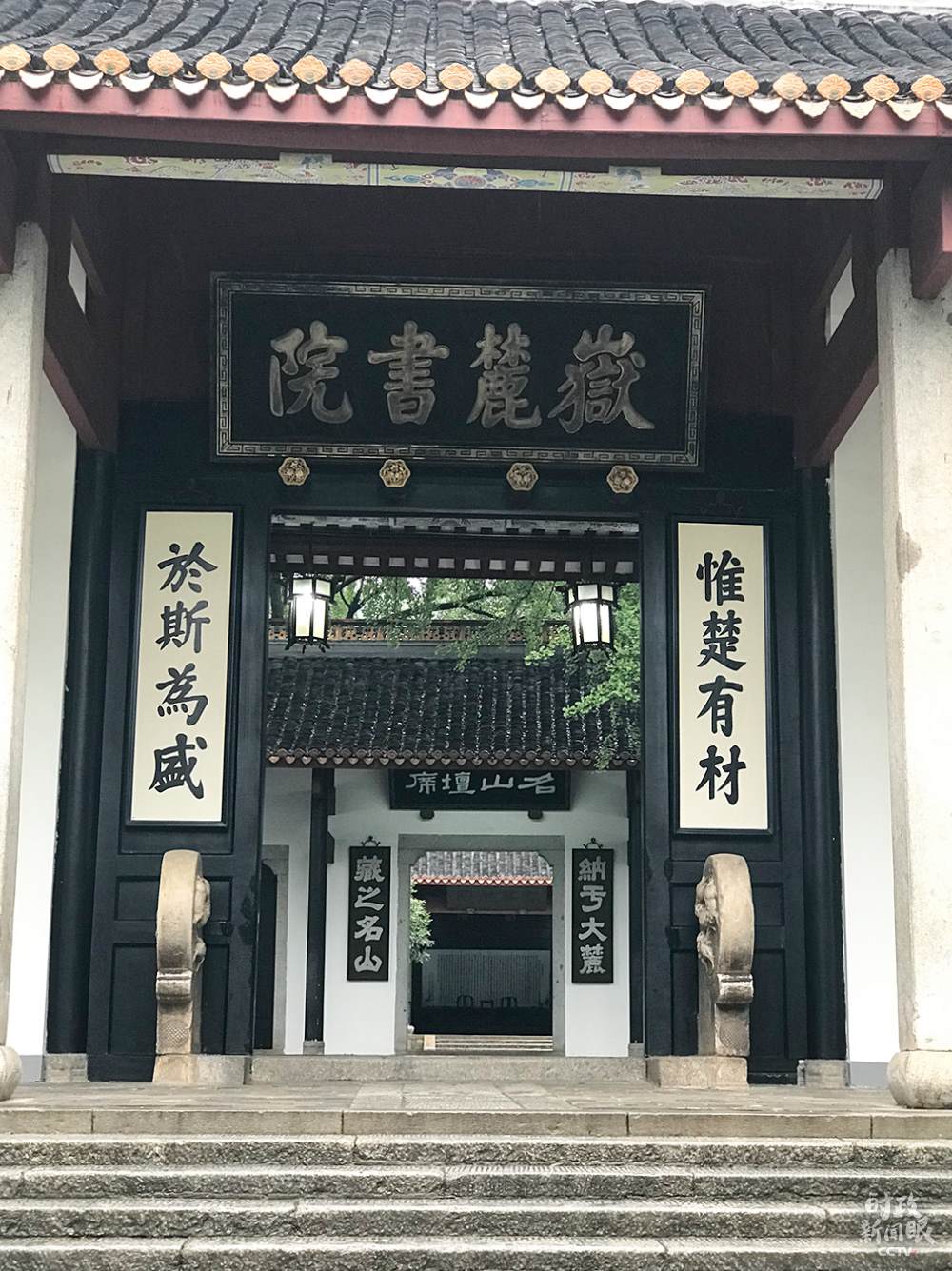 △岳麓書院是中華文化的重要地標,門前這幅對聯(lián)“惟楚有材于斯為盛”分別出自《左傳》和《論語·泰伯》。(總臺央視記者石偉明拍攝)
