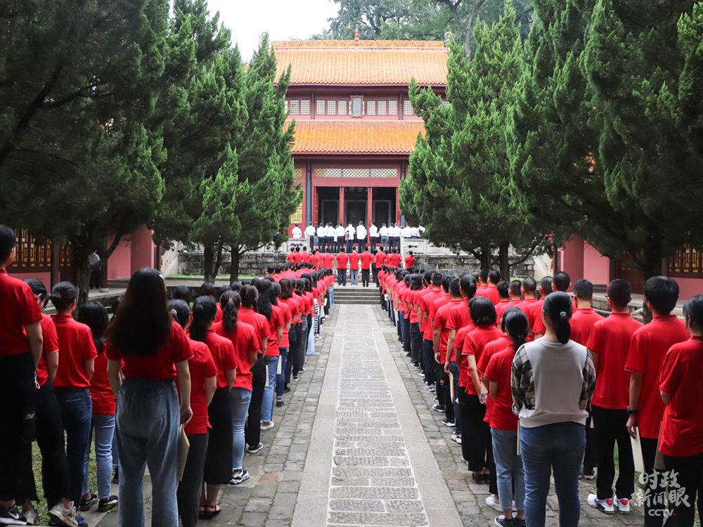 △岳麓書院2020級新生入學禮現(xiàn)場,142名新生齊聚大成殿前。(來源于岳麓書院官網(wǎng))