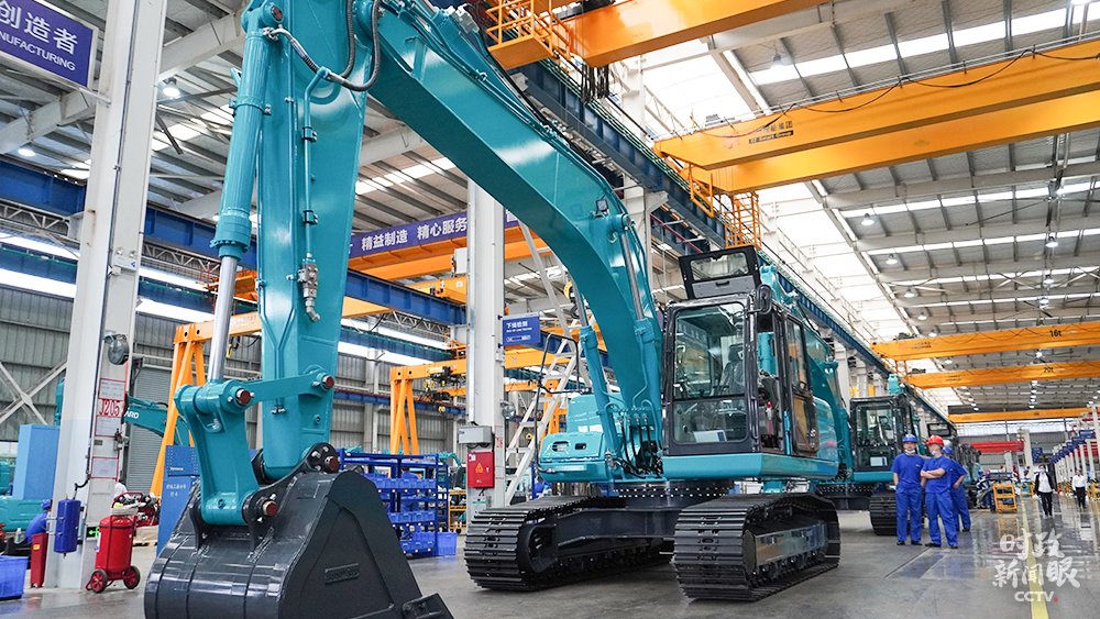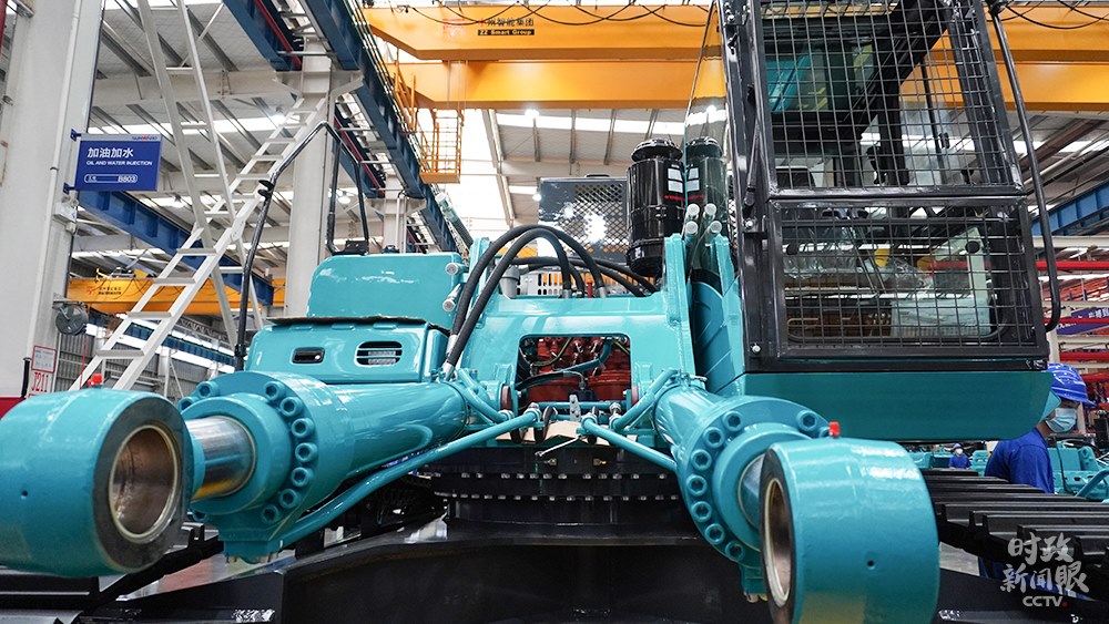 △山河智能生產(chǎn)車間組裝的大型挖掘機,能適應多種復雜地形作業(yè)。(總臺央視記者郭曉龍拍攝)