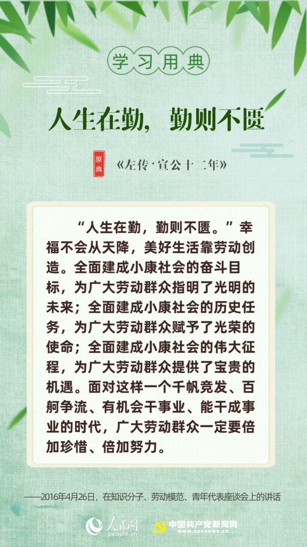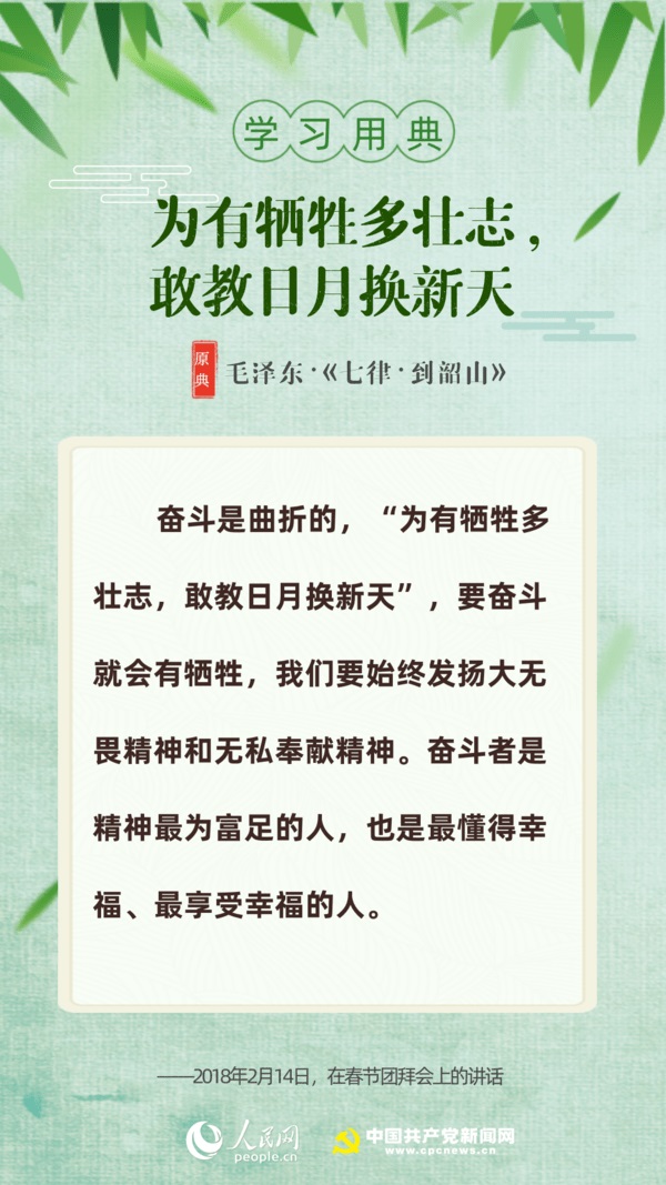 【編者按】“志不求易者成,事不避難者進?!苯?,習近平總書記給中國石油大學(北京)克拉瑪依校區(qū)畢業(yè)生回信,對廣大高校畢業(yè)生提出殷切期望。“人生在勤,勤則不匱”“積土而為山,積水而為?!薄陙?,習近平多次引用詩句典故,激勵包含廣大青年在內(nèi)的全黨全國各族人民拼搏奮進、埋頭苦干。正值“戰(zhàn)疫”“戰(zhàn)貧”關鍵時刻,人民網(wǎng)·中國共產(chǎn)黨新聞網(wǎng)與您一起回顧習近平講話中關于“奮斗”的10個名句。
