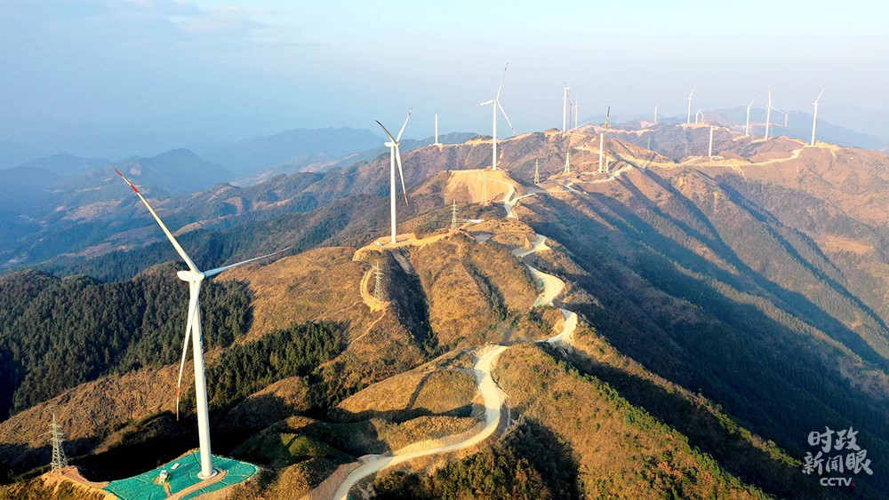 △廣西柳州,三江侗族自治縣大力發(fā)展清潔能源產(chǎn)業(yè),一字排開的風(fēng)力發(fā)電機(jī)成為侗鄉(xiāng)新地標(biāo)。