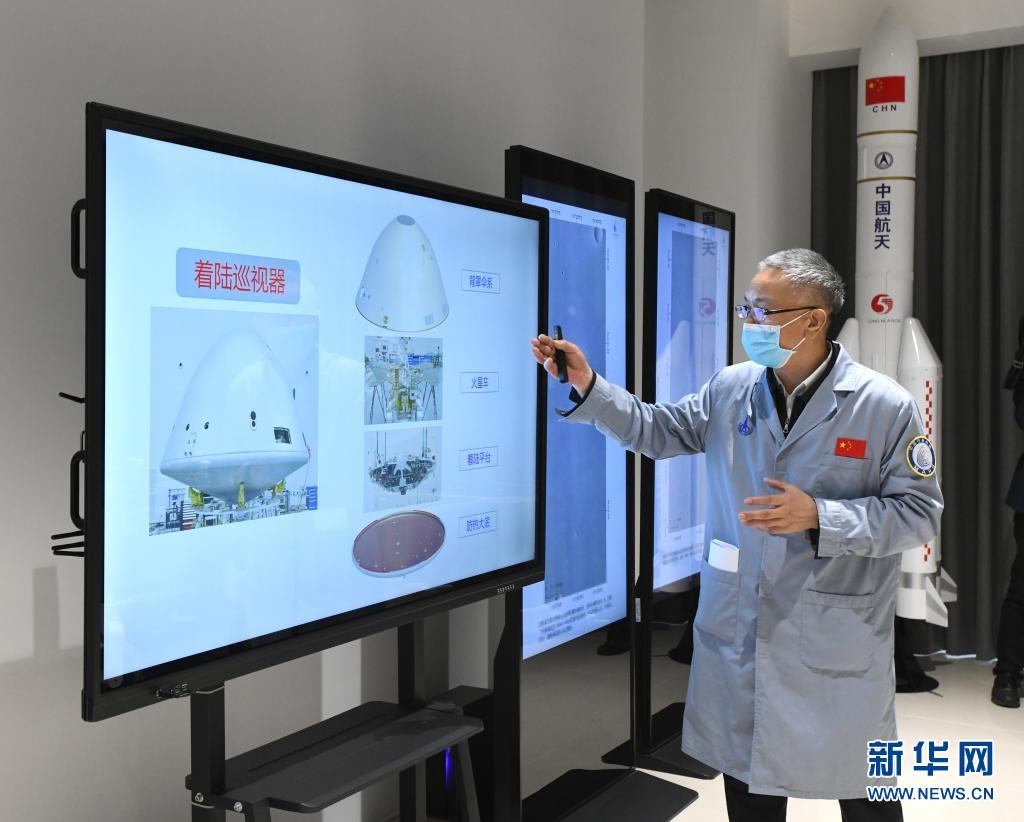 2021年5月15日,中國首次火星探測任務(wù)工程總設(shè)計師張榮橋介紹著陸巡視器有關(guān)情況。新華社記者 饒愛民 攝