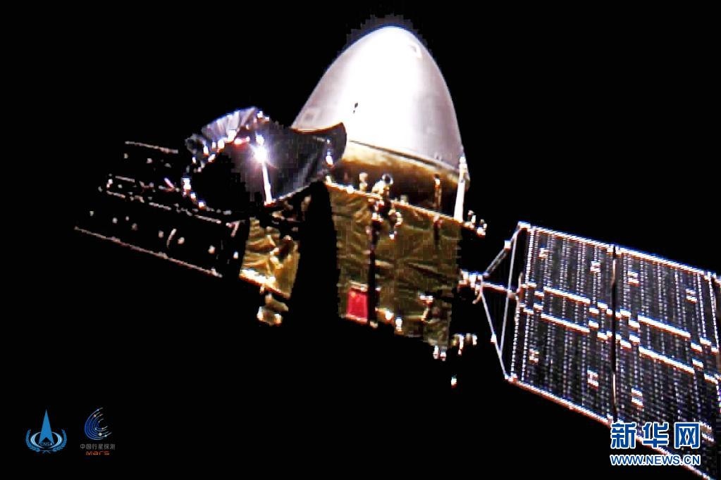 2020年10月1日,國家航天局發(fā)布我國首次火星探測任務(wù)天問一號探測器飛行圖像。新華社發(fā)(國家航天局供圖)