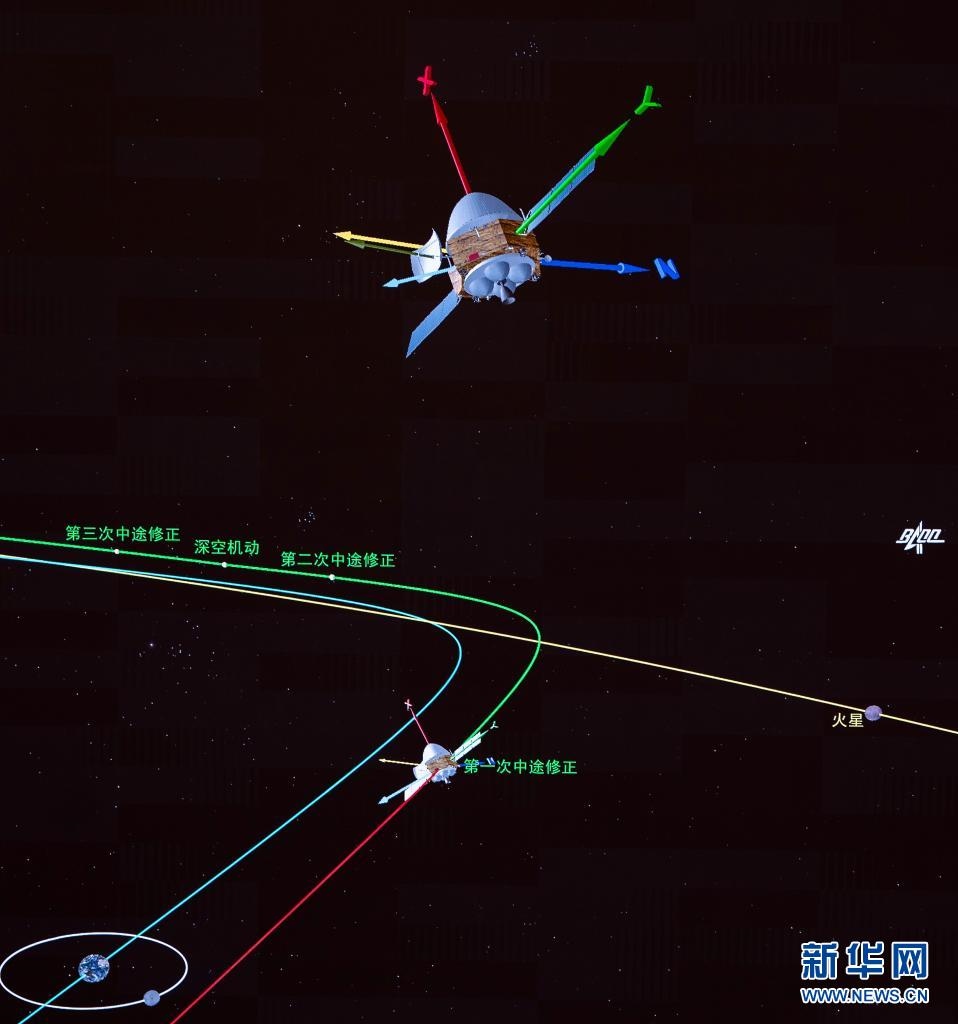 ——軌道修正,讓天問飛得更穩(wěn)。天問一號先后完成了四次中途軌道修正,對3000N發(fā)動機(jī)及120N、25N推力器的在軌性能、工作模式進(jìn)行了全面驗證。