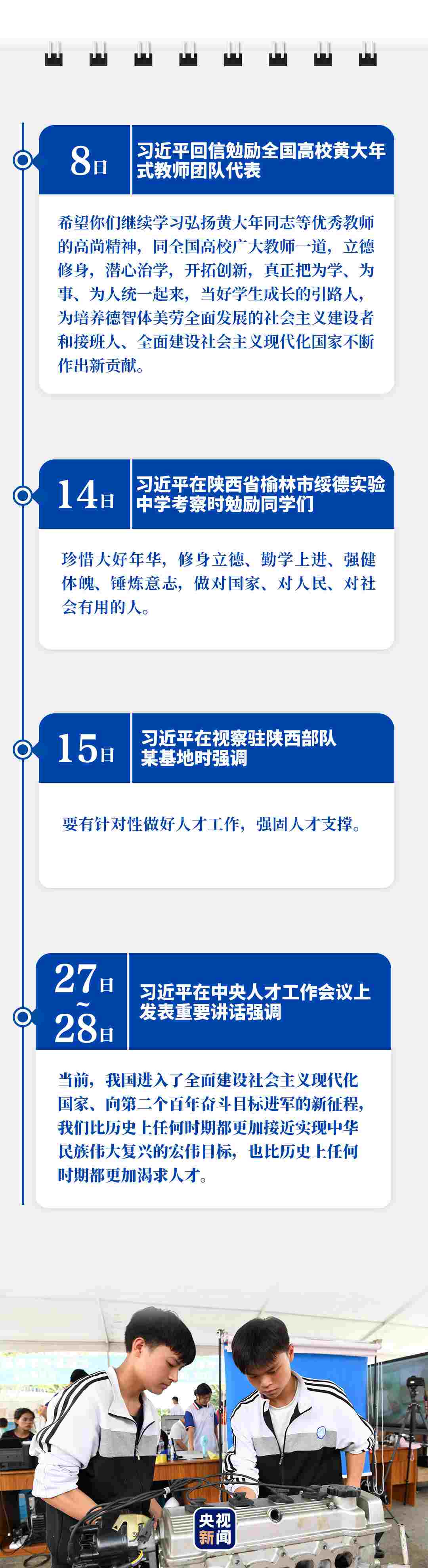 剛剛過去的9月,給人民英雄敬獻(xiàn)花籃,緬懷英烈、表達(dá)哀思;赴革命舊址考察,強(qiáng)調(diào)堅(jiān)守信仰、堅(jiān)定信念;出席重要會(huì)議,擘畫為黨育人、為國(guó)育才;開展多次“云外交”活動(dòng),主張講信修睦、合作共贏……習(xí)近平行程滿滿,話語(yǔ)鏗鏘。