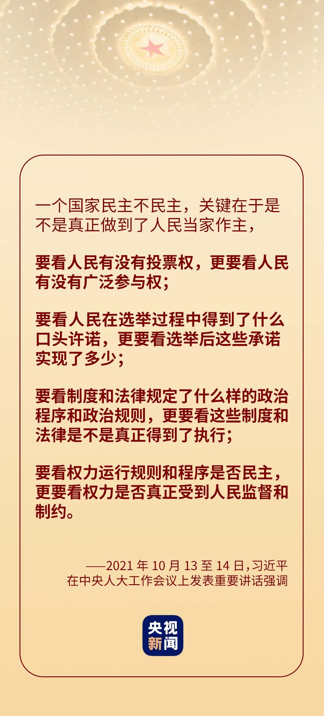 “黨的十八大以來(lái),我們深化對(duì)民主政治發(fā)展規(guī)律的認(rèn)識(shí),提出全過程人民民主的重大理念。”在中央人大工作會(huì)議上,習(xí)近平全面闡釋了“全過程人民民主”的深刻內(nèi)涵——實(shí)現(xiàn)了過程民主和成果民主、程序民主和實(shí)質(zhì)民主、直接民主和間接民主、人民民主和國(guó)家意志相統(tǒng)一,是全鏈條、全方位、全覆蓋的民主,是最廣泛、最真實(shí)、最管用的社會(huì)主義民主。
