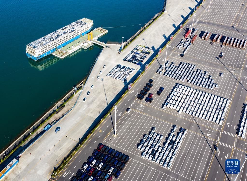 這是三峽庫區(qū)湖北省宜昌市秭歸縣秭歸港車輛分撥轉(zhuǎn)運現(xiàn)場(2020年11月13日攝,無人機照片)。新華社發(fā)(鄭家裕攝)