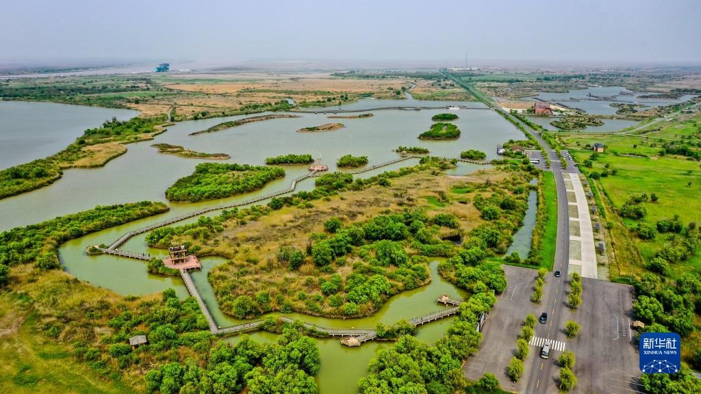 這是5月13日拍攝的山東黃河三角洲國家級自然保護(hù)區(qū)景色(無人機照片)。新華社記者 郭緒雷 攝
