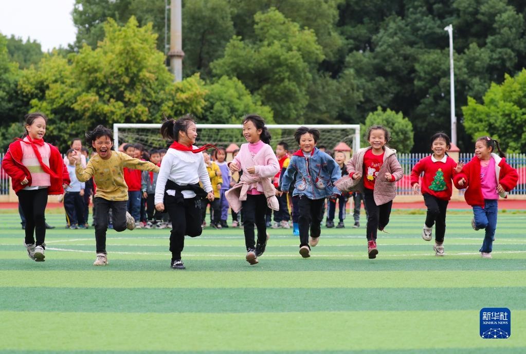 11月4日,在湖南省永州市新田縣雙碧小學(xué),孩子們在運動場上做游戲。今年秋季學(xué)期開學(xué)以來,各地積極落實“雙減”政策,利用課后服務(wù)時間開展內(nèi)容豐富、形式多樣的課外活動,促進(jìn)學(xué)生全面發(fā)展。新華社發(fā)(劉貴雄攝)