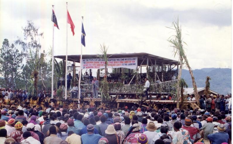 圖為1998年,在巴新的菌草技術(shù)重演示范試驗(yàn)成功現(xiàn)場(chǎng)會(huì)現(xiàn)場(chǎng)。(國(guó)家菌草工程技術(shù)研究中心供圖)
