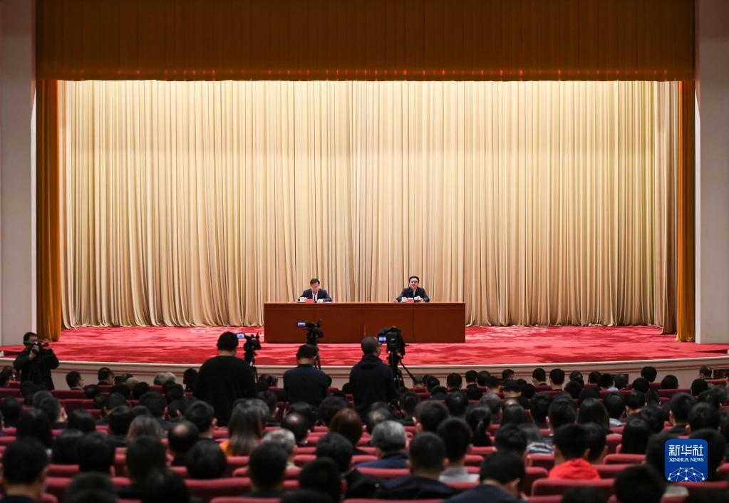 2021年3月16日,黨史學(xué)習(xí)教育中央宣講團(tuán)首場報(bào)告會(huì)在北京舉行。這是中央宣講團(tuán)成員、中央黨史和文獻(xiàn)研究院院長曲青山(右)在報(bào)告會(huì)上作宣講報(bào)告。新華社記者陳曄華攝