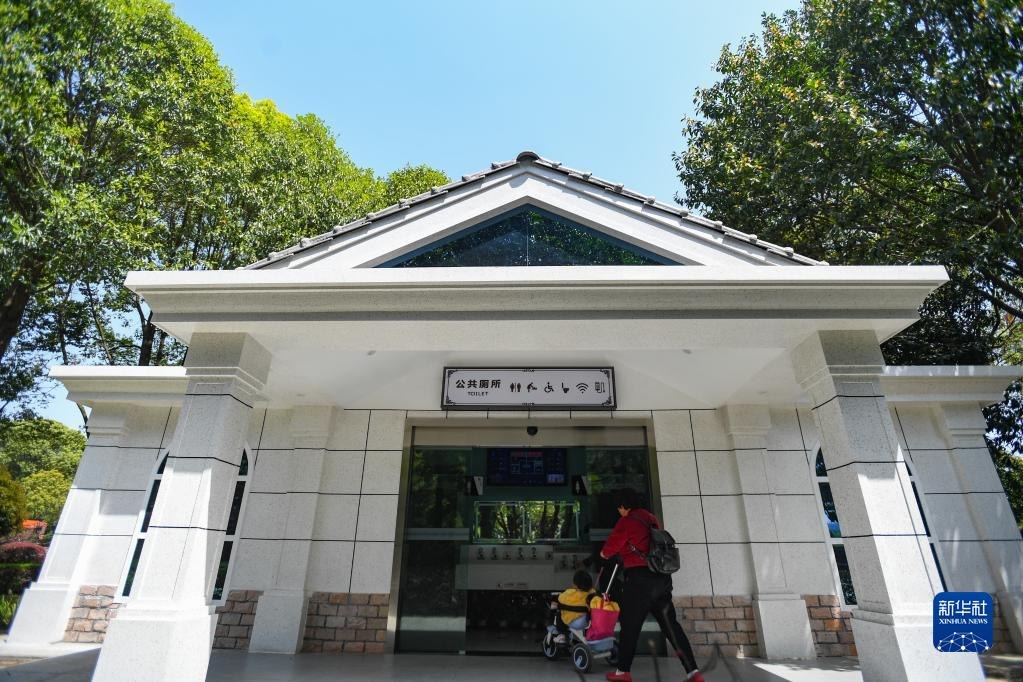 市民帶著小朋友進(jìn)入位于湖南長沙縣星沙中心廣場的智慧廁所(2021年3月24日攝)。新華社記者陳澤國攝