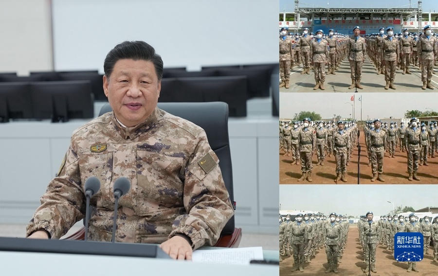 隨后,習近平同中部戰(zhàn)區(qū)海外維和分隊進行視頻通話。來自維和步兵營、工兵分隊、醫(yī)療分隊、直升機分隊的同志們整齊列隊,依次向習近平報告。習近平向他們,并向我軍正在海外執(zhí)行任務的全體官兵表示慰問。習近平強調(diào),要忠實履行維和使命,為維護世界和平貢獻更多中國力量,向世界展示中國軍隊良好形象。維和任務區(qū)環(huán)境復雜,要注意加強安全防范,搞好疫情防控。