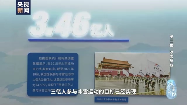 冰雪之約,中國之諾。八年前,中國許下了“三億人參與冰雪”的承諾;八年后,承諾已經(jīng)變?yōu)樯鷦拥默F(xiàn)實,中國冰雪運動大潮奔涌。大江南北,雪橇劃過;長城內(nèi)外,冰刀飛舞;大河上下,雪車轟鳴。