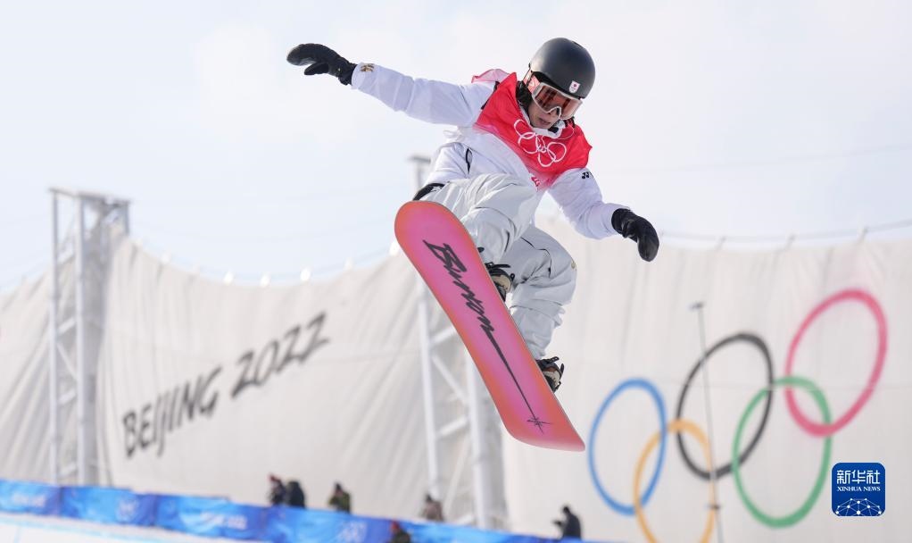 2月9日,日本選手平野步夢(mèng)在單板滑雪男子U型場(chǎng)地技巧資格賽中。新華社記者 牟宇 攝