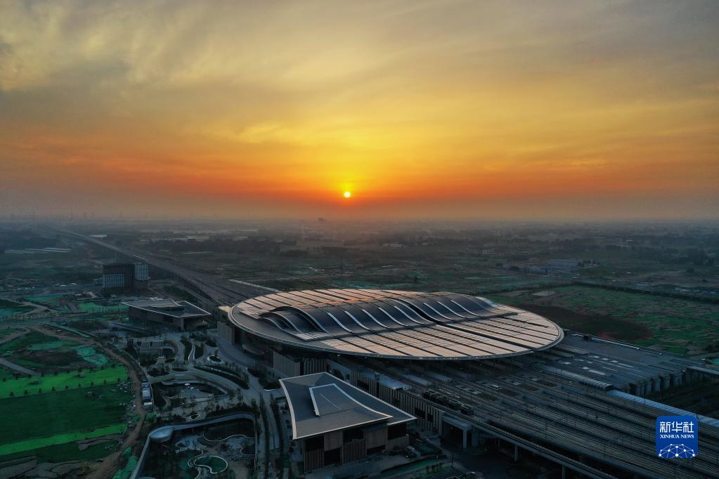 這是2021年7月1日拍攝的京雄城際鐵路雄安站(無人機(jī)照片)。新華社記者 牟宇 攝