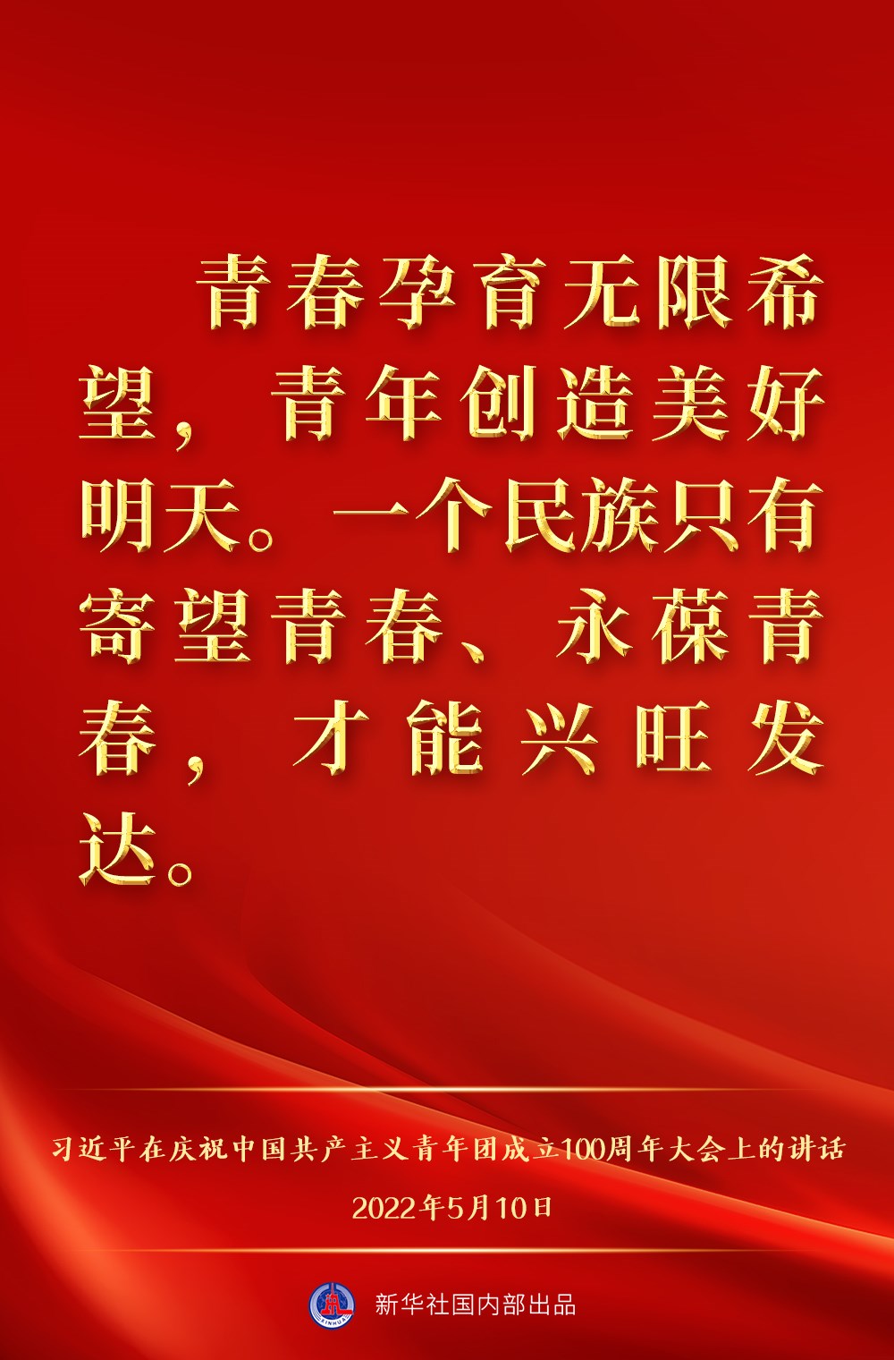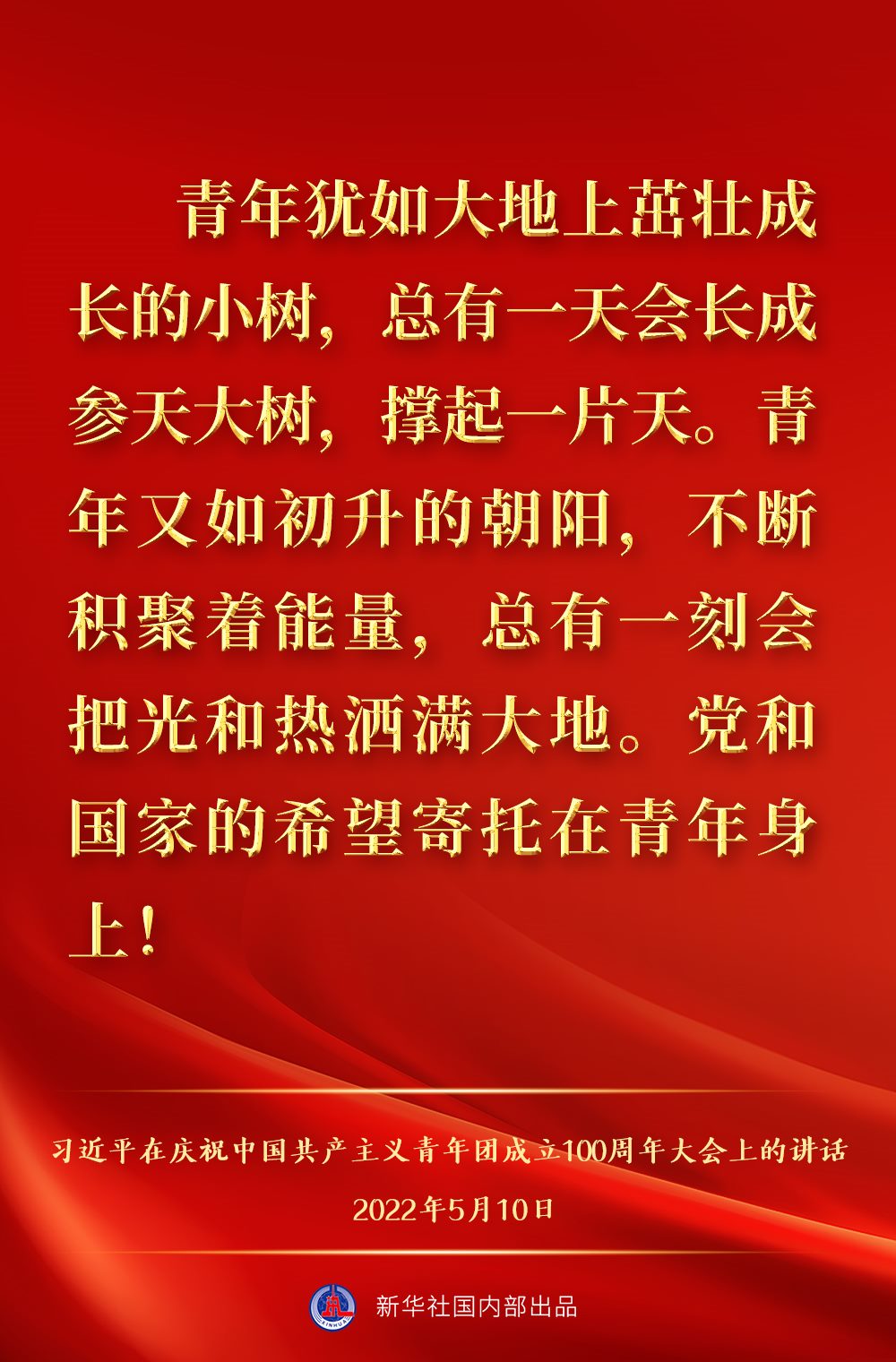 5月10日上午,中共中央總書(shū)記、國(guó)家主席、中央軍委主席習(xí)近平出席慶祝中國(guó)共產(chǎn)主義青年團(tuán)成立100周年大會(huì)并發(fā)表重要講話,一起來(lái)看金句。