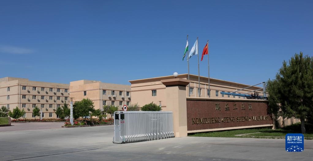 這是2018年5月8日拍攝的烏茲別克斯坦鵬盛工業(yè)園入口。鵬盛工業(yè)園是中國民營企業(yè)直接在烏投資建立的首個(gè)中烏合資工業(yè)園區(qū)。新華社記者周良攝