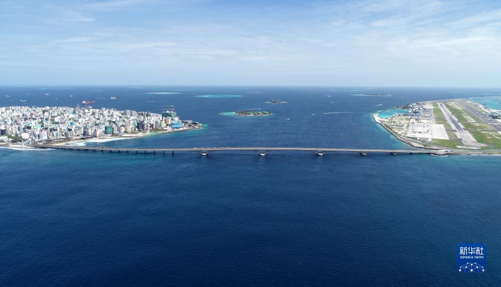這是在馬爾代夫航拍的連接首都馬累和機場島的中馬友誼大橋(2019年8月30日攝)。新華社發(fā)(王明亮攝)