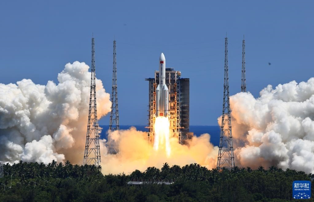 2022年7月24日,搭載問天實驗艙的長征五號B遙三運載火箭,在我國文昌航天發(fā)射場點火發(fā)射。新華社記者李剛攝