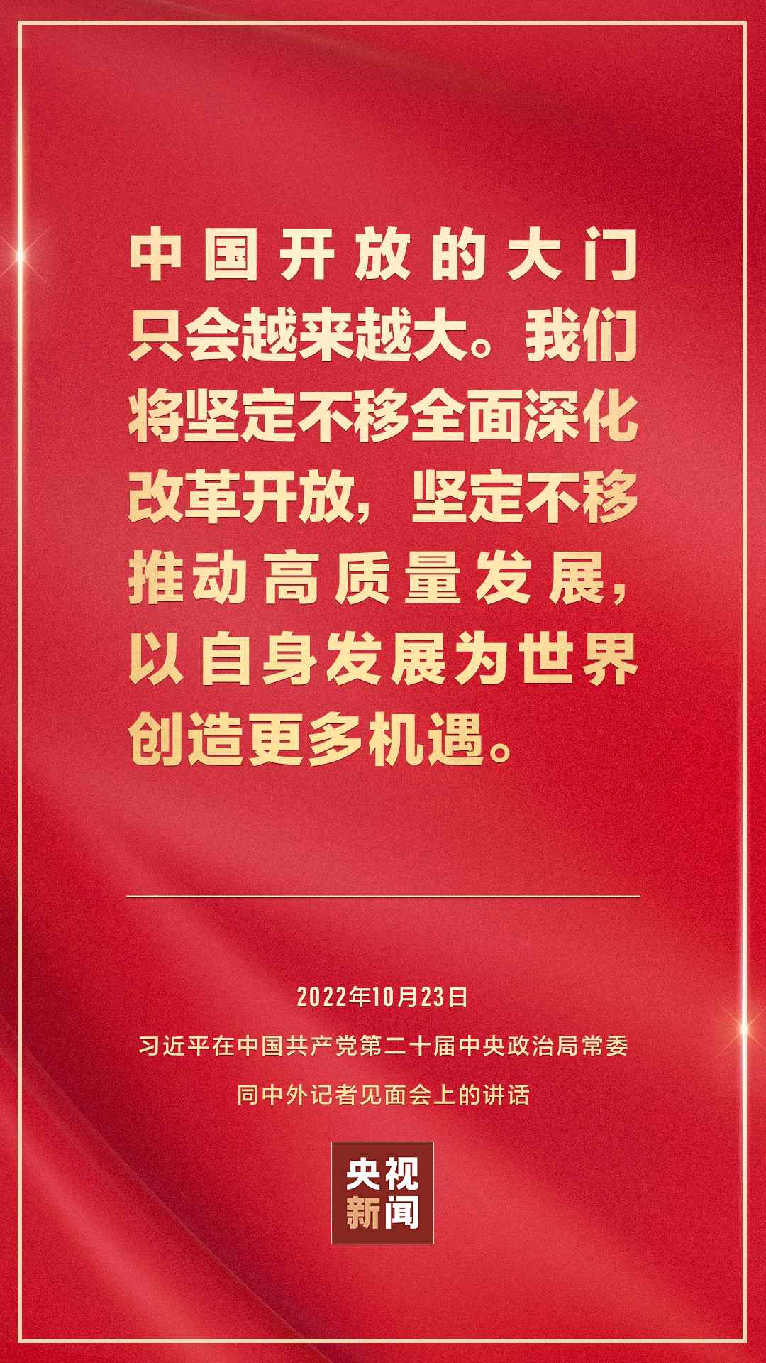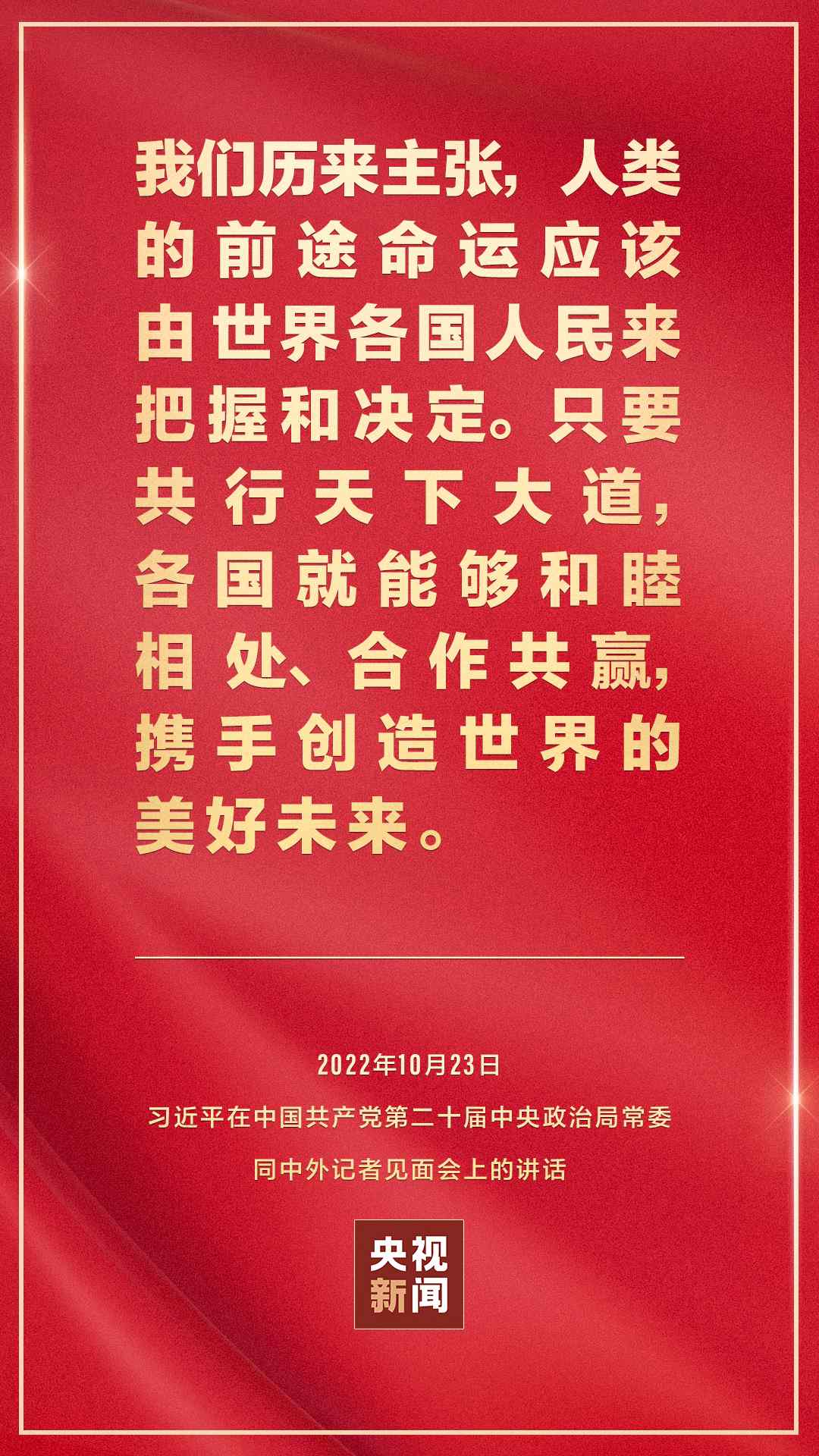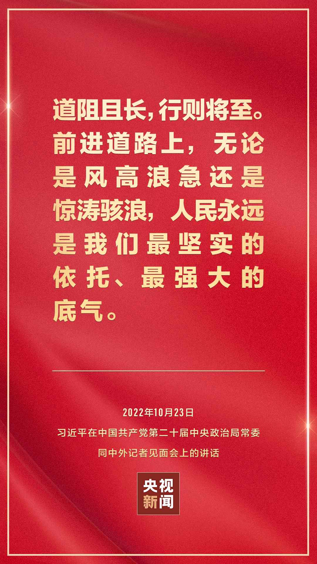 在中國共產(chǎn)黨第二十屆中央委員會第一次全體會議上當(dāng)選的中共中央總書記習(xí)近平和中共中央政治局常委李強、趙樂際、王滬寧、蔡奇、丁薛祥、李希,23日中午在人民大會堂同采訪中共二十大的中外記者見面。習(xí)近平發(fā)表重要講話。