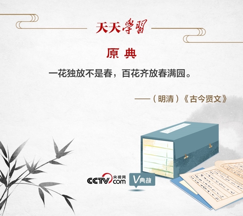“一花獨(dú)放不是春,百花齊放春滿園”,意思是,一枝單獨(dú)開放的花朵不能代表春天的到來,只有百花競艷才是人間春色。這句民諺之所以廣為流傳,是因?yàn)轱柡羁陶芾恚阂弧㈥U述了整體和部分的辯證關(guān)系,“一花”是部分,“百花”是整體,部分的功能是較小的,要以整體發(fā)展帶動部分發(fā)展;二、體現(xiàn)了聯(lián)系的觀點(diǎn),聯(lián)系具有普遍性,“一花”和“百花”是相互聯(lián)系的,因此要尊重文化的多樣性;三、說明了事物是客觀的和發(fā)展變化的,“百花齊放”是必然的,因此要順應(yīng)歷史潮流。