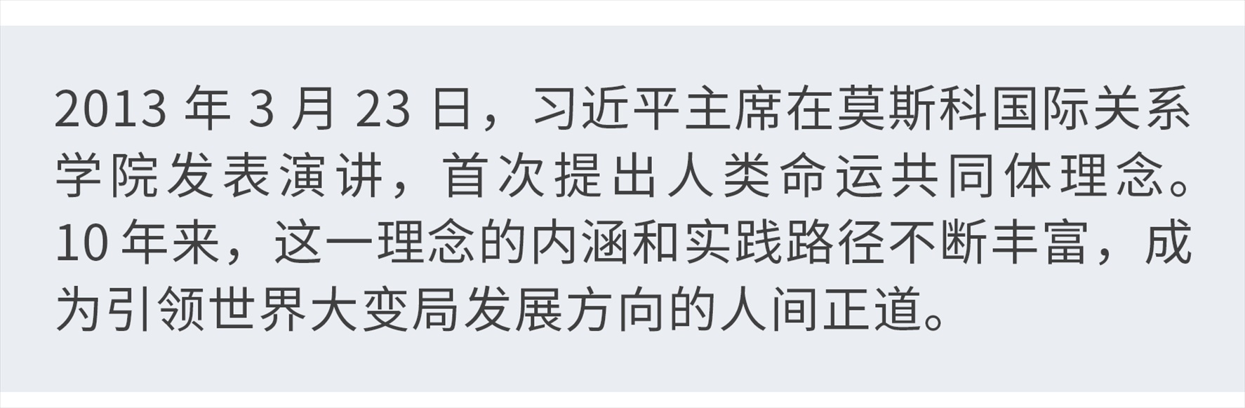 “我們兩國(guó)要永做好鄰居、好朋友、好伙伴”。10年前,當(dāng)選國(guó)家主席后首次出訪(fǎng),習(xí)近平在莫斯科國(guó)際關(guān)系學(xué)院發(fā)表演講時(shí)這樣說(shuō)道。也正是在這次演講中,習(xí)近平主席首次提出人類(lèi)命運(yùn)共同體理念。