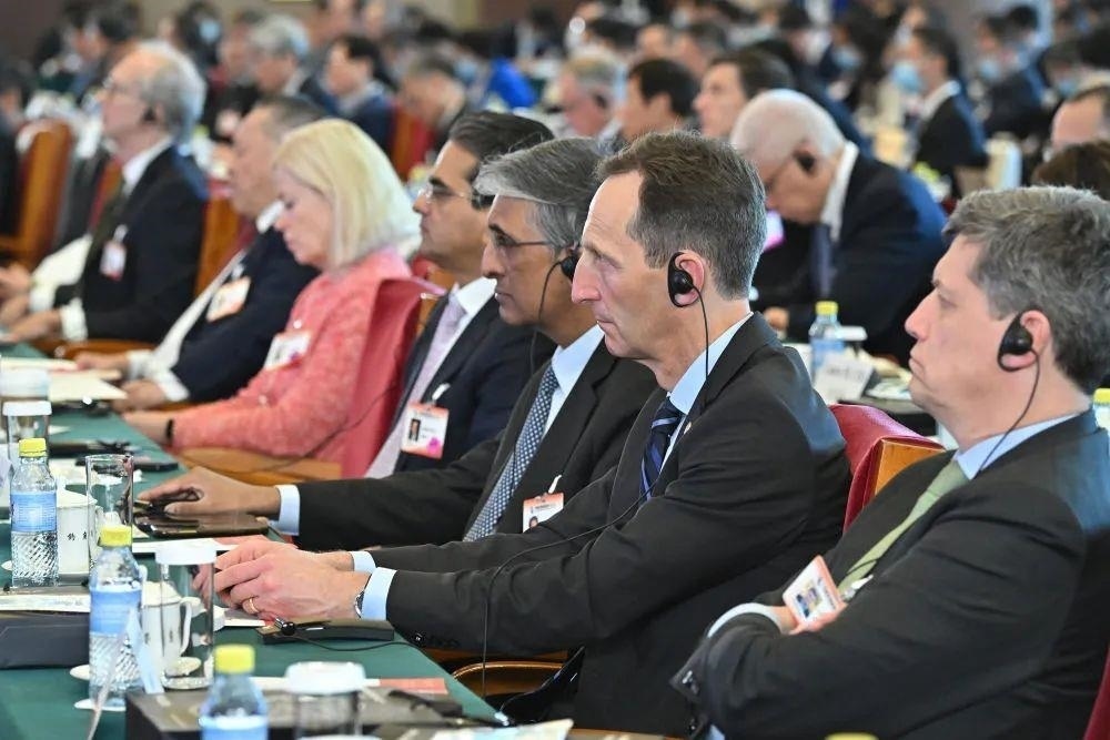 △3月26日,中國(guó)發(fā)展高層論壇2023年年會(huì)與會(huì)者聆聽(tīng)嘉賓發(fā)言。