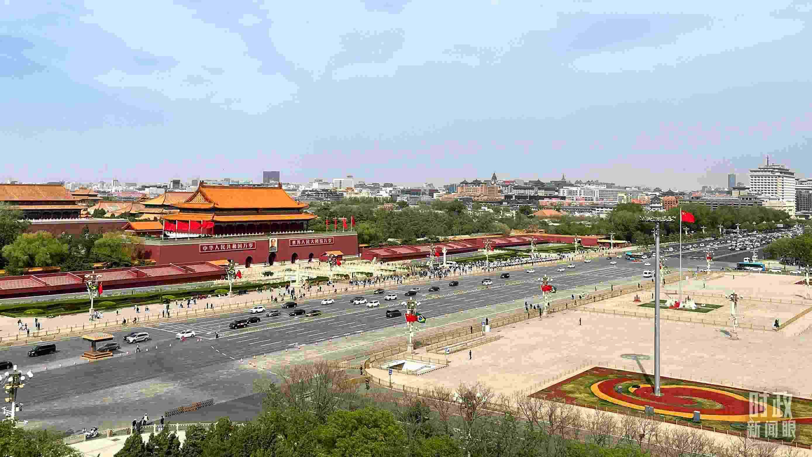 △長安街兩側(cè)懸掛起中巴兩國國旗。(總臺央視記者陸泓宇拍攝)