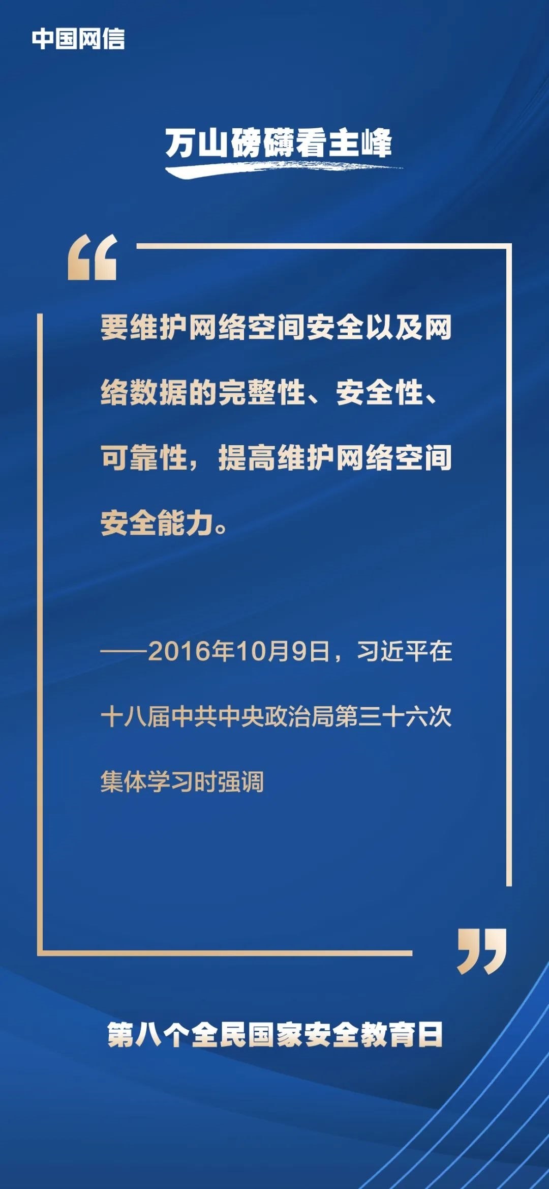 國家安全是安邦定國的重要基石,維護(hù)國家安全是全國各族人民根本利益所在。2023年4月15日是第八個(gè)全民國家安全教育日,今年的主題是“貫徹總體國家安全觀,增強(qiáng)全民國家安全意識和素養(yǎng),夯實(shí)以新安全格局保障新發(fā)展格局的社會(huì)基礎(chǔ)”。沒有網(wǎng)絡(luò)安全就沒有國家安全,以下摘取習(xí)近平總書記關(guān)于“網(wǎng)絡(luò)安全”的重要論述,與你一起回顧學(xué)習(xí)。