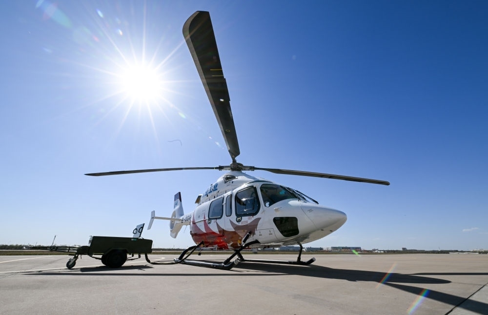 這是2023年4月7日在航空工業(yè)天津直升機有限責(zé)任公司停機坪拍攝的“吉祥鳥”AC332直升機。新華社記者 孫凡越 攝