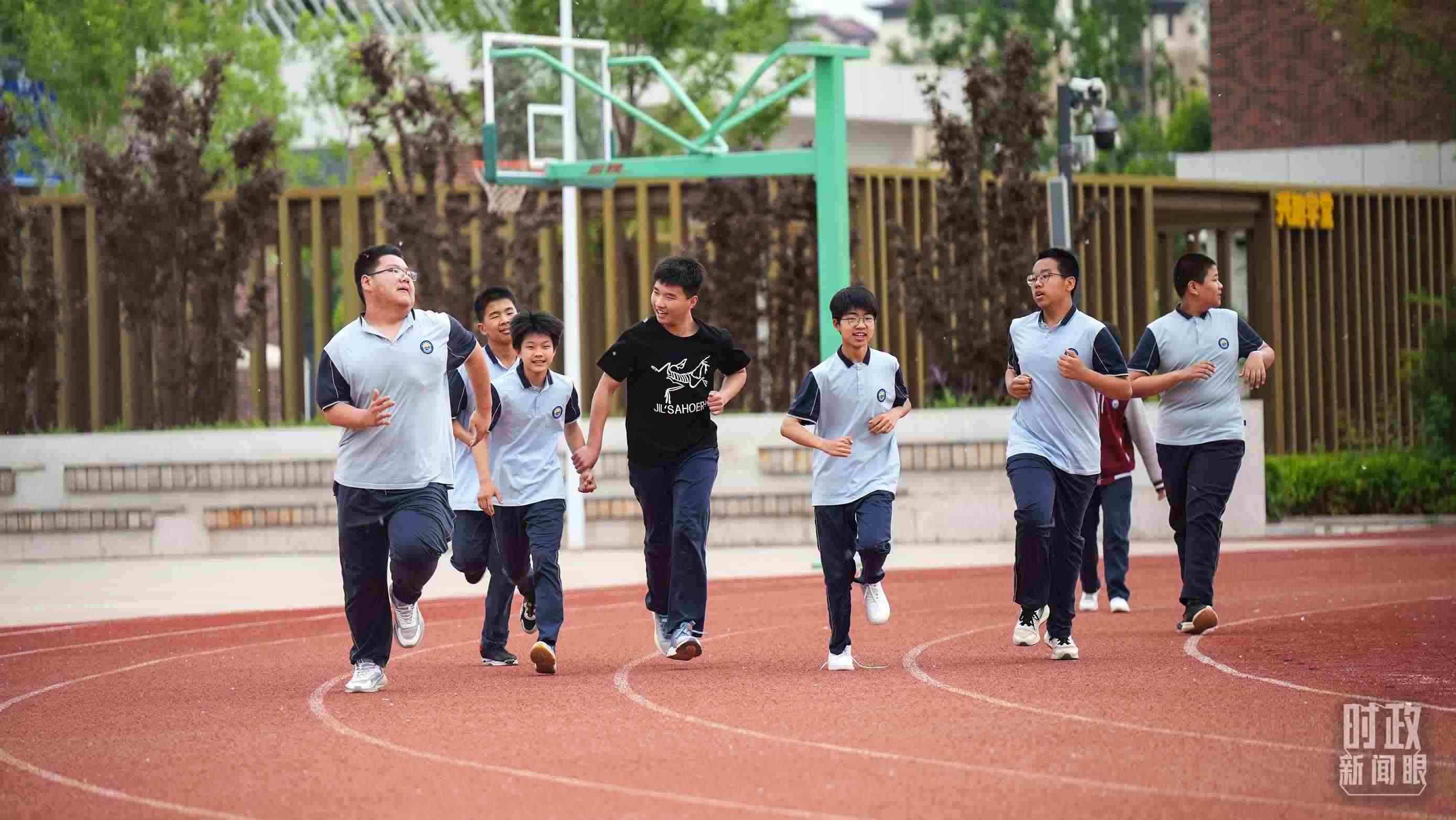 △容東安置區(qū)的雄安容和紅杰初級中學(xué)內(nèi),中學(xué)生在操場練習(xí)長跑。(總臺國廣記者李晉拍攝)