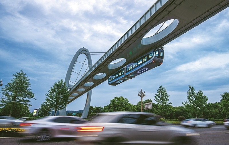 列車懸掛在軌道下方,從人們頭頂飛馳而過,這樣的科幻場景,最近在武漢東湖新技術(shù)開發(fā)區(qū)成了現(xiàn)實(shí)。圖為2023年5月9日,武漢“光谷光子號”空軌列車在綜合聯(lián)調(diào)和試運(yùn)行中。 新華社記者 肖藝九/攝