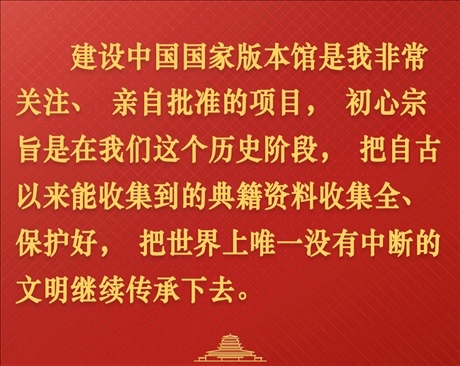 習近平強調(diào),建設中國國家版本館,是文明大國建設的基礎工程,是功在當代、利在千秋的標志性文化工程。