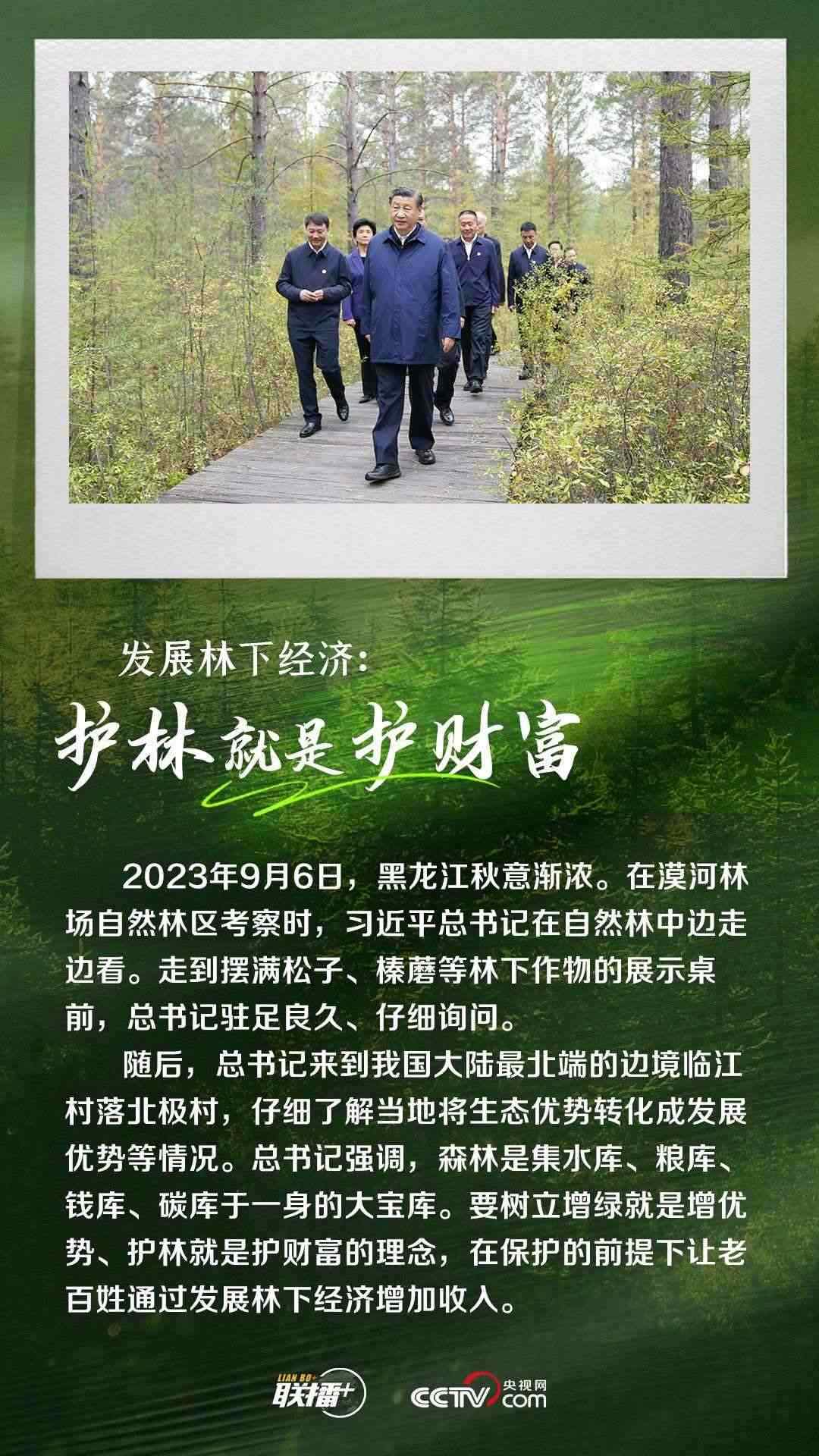 9月6日,習(xí)近平總書記來到黑龍江省大興安嶺地區(qū)漠河市考察。他深入林區(qū),走進(jìn)鄉(xiāng)村,察看自然林生長態(tài)勢和林下作物展示,仔細(xì)了解當(dāng)?shù)亟Y(jié)合地域優(yōu)勢發(fā)展特色旅游、將生態(tài)優(yōu)勢轉(zhuǎn)化成發(fā)展優(yōu)勢等情況。