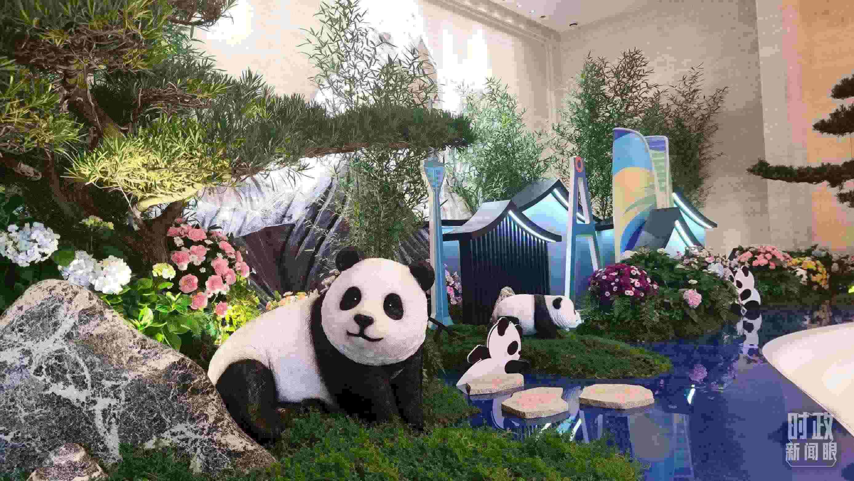 △為國際貴賓展示的四川非物質(zhì)文化遺產(chǎn)棕編和蜀繡。(總臺(tái)央視記者蔣碩、韓銳拍攝)