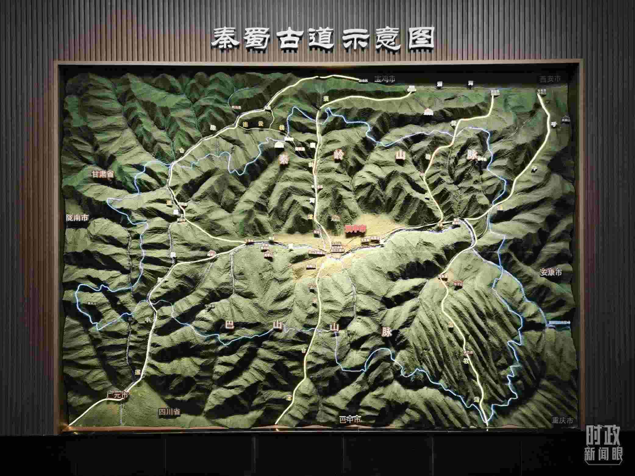 △漢中市博物館內(nèi)展示的秦蜀古道示意圖。(總臺(tái)央視記者黎兵拍攝)